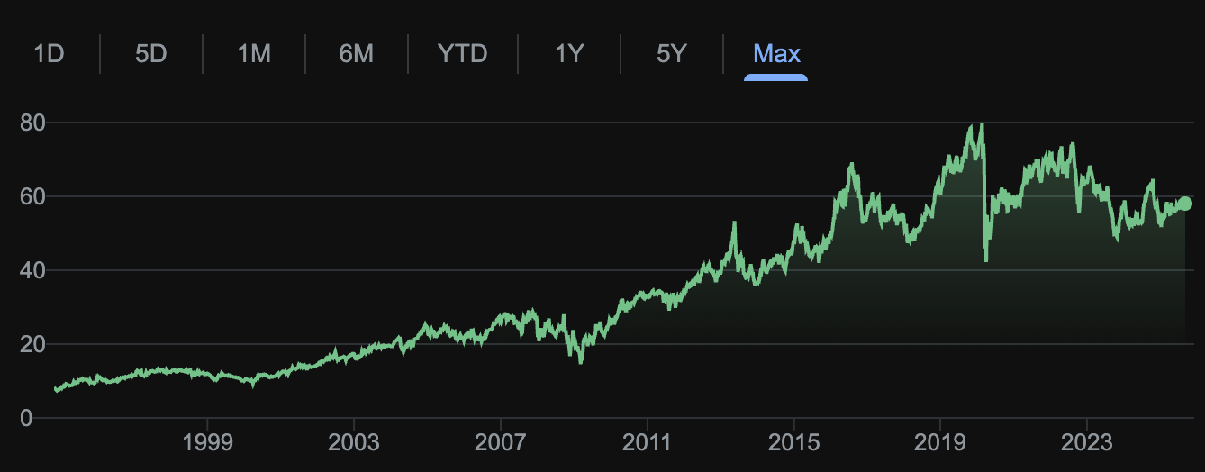 주가: 약 58$